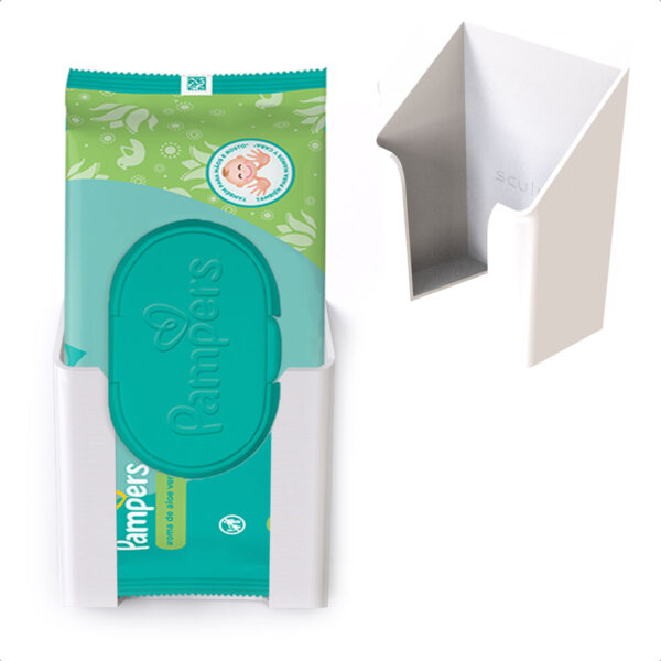 O Dispenser Sculpy LUG atende todas as marcas de lenços umedecidos em embalagens padrão de 96 unidades ou 2 pacotes de 48 unidades. Ideal para uso residencial, em consultórios, creches e espaços de cuidados pessoais.