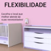 A instalação é feita por meio de fitas dupla-face de alta resistência (inclusas), eliminando a necessidade de furar paredes. Pode ser fixado em paredes, azulejos, móveis, cômodas ou superfícies lisas com total segurança e praticidade.
