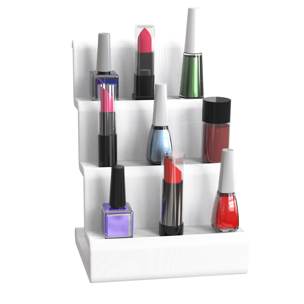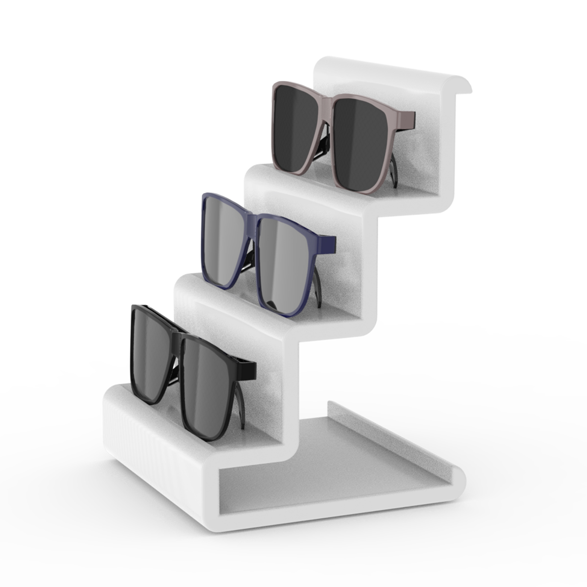 Exiba e organize seus óculos com elegância e praticidade usando o display tipo escada Sculpy ES1 — compacto, moderno e versátil.