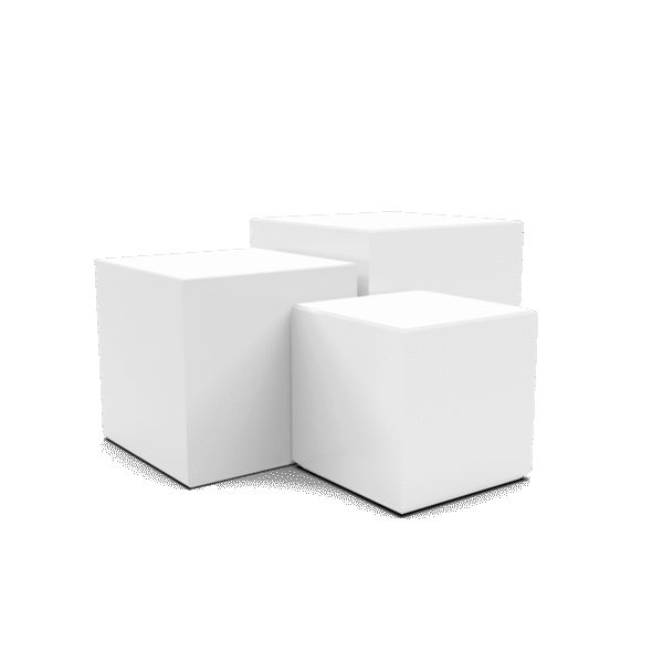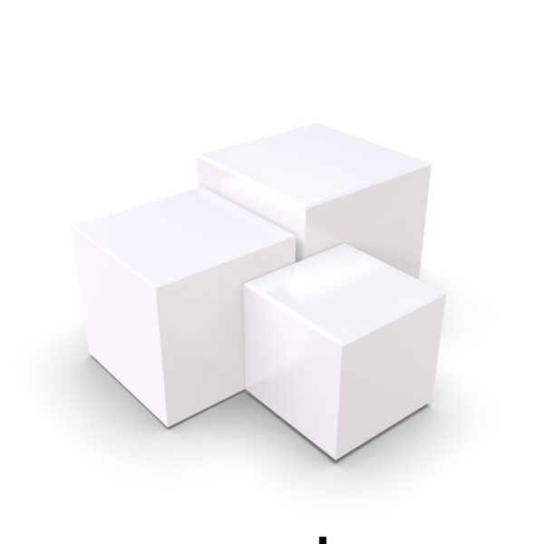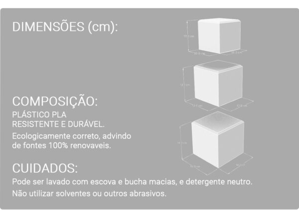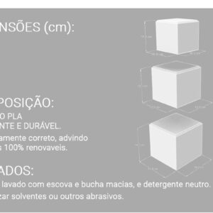 Total: 3 cubos expositores com diferentes tamanhos para composições visuais variadas.