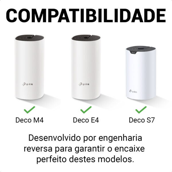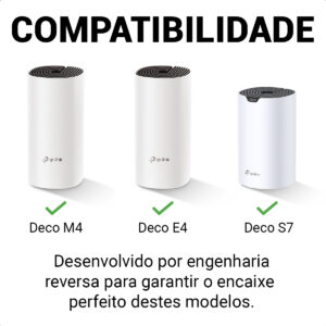 Projetado sob medida para os modelos TP-Link Deco S7, M4 e E4, o suporte oferece encaixe preciso e fixação segura, mantendo o roteador estável e bem posicionado.
