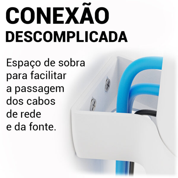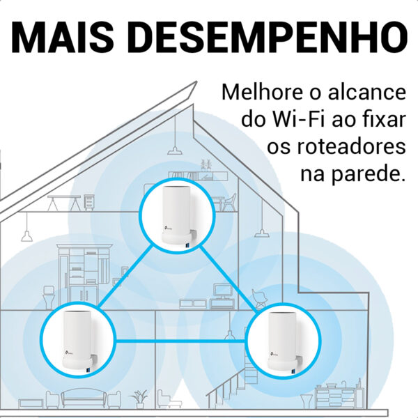 Fixar o roteador na parede permite melhorar a distribuição do sinal Wi-Fi por todo o ambiente e, ao mesmo tempo, liberar espaço em mesas, bancadas e estantes. Uma solução prática, elegante e funcional para o seu dia a dia.