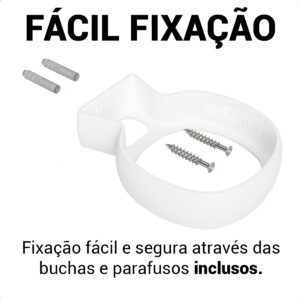 Acompanha parafusos e buchas para fixação simples e firme na parede. Em poucos minutos, o produto já está pronto para uso, dispensando ferramentas complexas ou instalação profissional.