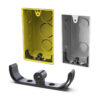 • Design Universal: Compatível com todos os tipos e tamanhos de caixas elétricas (4×2 e 4×4), sejam metálicas ou plásticas. O formato inteligente adapta-se e centraliza automaticamente para fixação precisa.