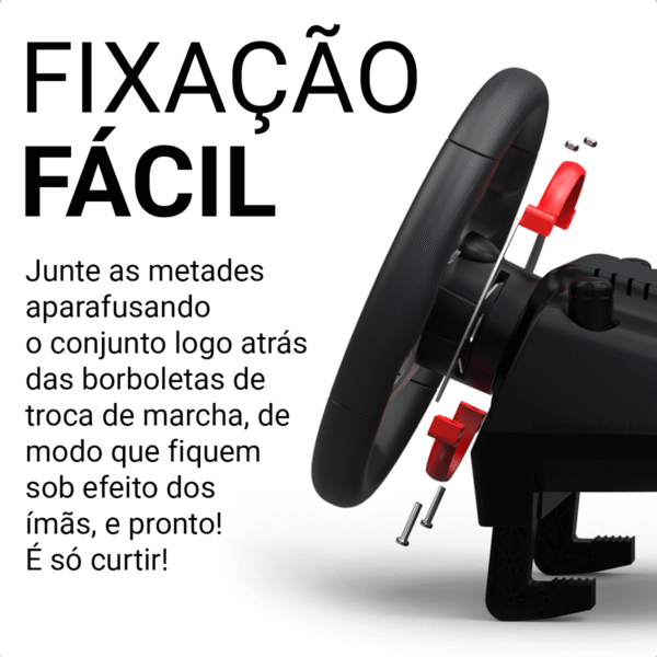 • Instalação Descomplicada: Rápida e prática, exigindo apenas uma chave Phillips. Fixação firme através de 2 parafusos e 2 porcas inclusos, sem necessidade de desmontar o volante.