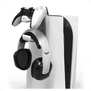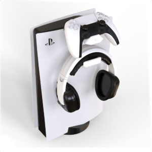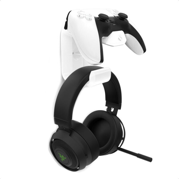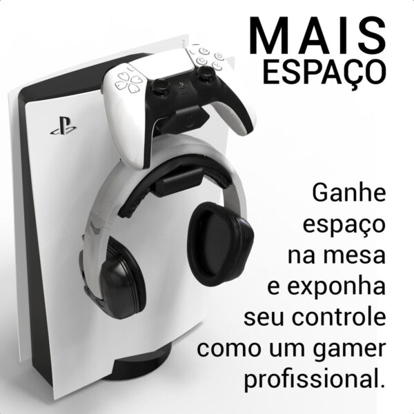Com desenho 100% orgânico e ergonômico, o suporte acomoda o controle PS5 e o headset com total segurança, sem pontas agudas ou salientes. O encaixe perfeito protege seus acessórios contra quedas, riscos e deformações, enquanto decora o ambiente com um toque moderno e minimalista.