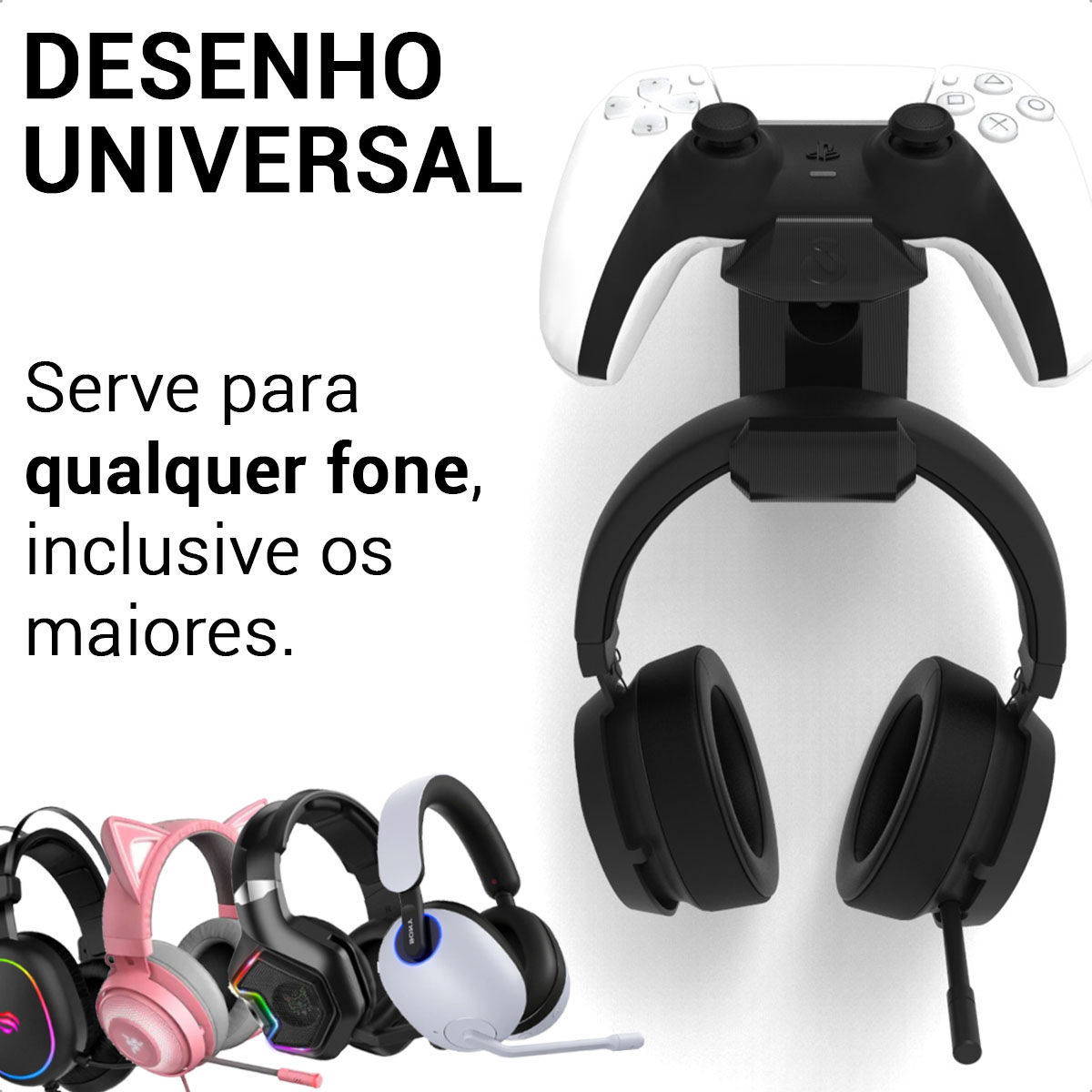 Organize seu setup gamer com o suporte de parede Sculpy para controle PS5 e headset — fixação segura, design moderno e acabamento premium.
