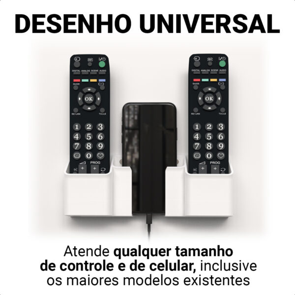 • Compatibilidade Universal: Projetado para acomodar dois controles remotos e um celular de qualquer tamanho, incluindo modelos grandes e modernos.