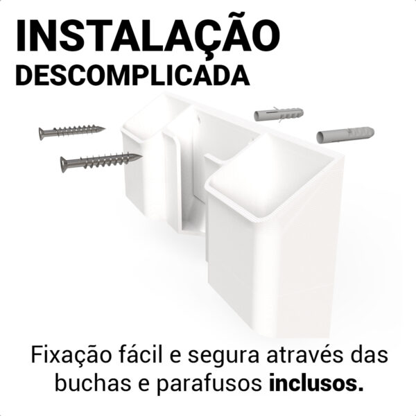 • Instalação Versátil: Duas opções de fixação — com fita dupla-face já aplicada (sem furos ou sujeira) ou com parafusos e buchas (para máxima segurança).