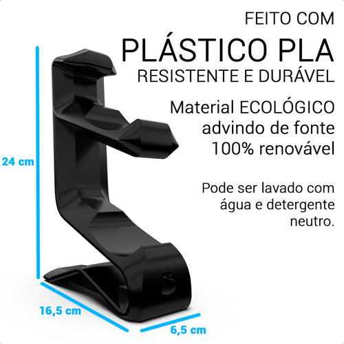 Com linhas ergonômicas e acabamento refinado, o suporte 2CTF garante encaixe perfeito para os controles e o headset, sem pontas agudas ou salientes que possam riscar ou danificar seus acessórios. Além de organizar, o suporte também decora o ambiente e dá um toque profissional ao seu setup gamer.