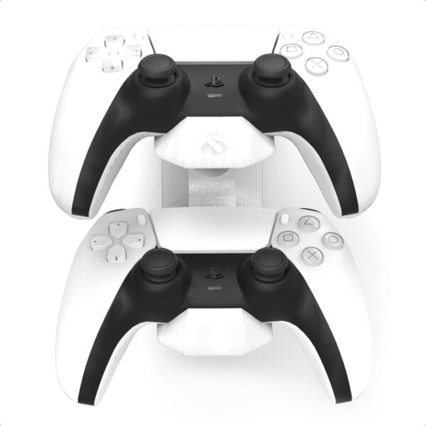 Com desenho 100% orgânico e fluido, o suporte oferece encaixe perfeito para 2 controles PS5, sem pontas agudas ou salientes que possam causar riscos ou danos. Seu visual minimalista e moderno decora o ambiente gamer e mantém seus acessórios sempre bem organizados.