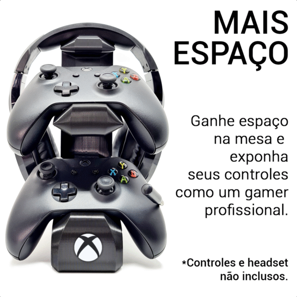 Mantenha seu ambiente gamer organizado e sofisticado com o Suporte de Mesa para 2 Controles Xbox One S/X + Headset – Modelo 2CTFL. Desenvolvido para acomodar seus acessórios de forma prática e segura, é a solução ideal para quem busca um setup funcional, bonito e bem estruturado.