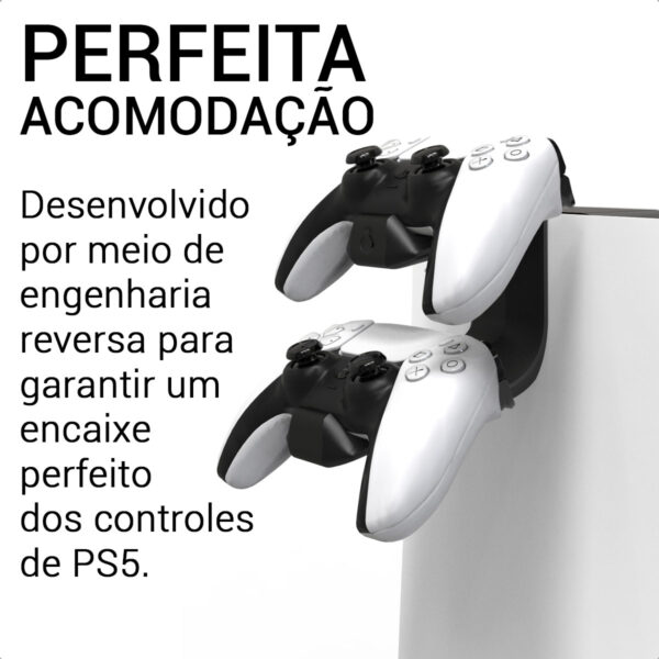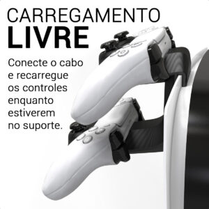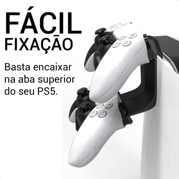 A instalação é rápida e prática: basta encaixar o suporte na aba superior do seu console PS5 e pronto! O sistema tipo clip garante fixação firme e estável, sem necessidade de parafusos, colas ou ferramentas.