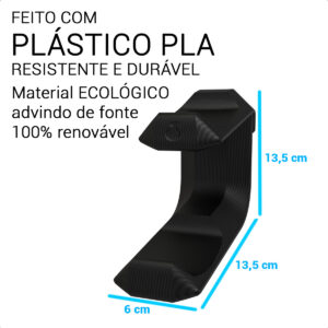 Além de funcional, o suporte libera espaço na mesa e adiciona um toque moderno ao seu ambiente gamer, deixando seu setup mais limpo e organizado.