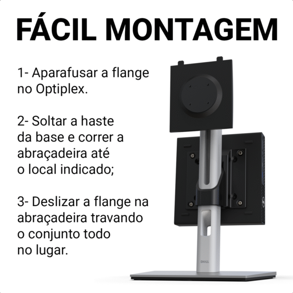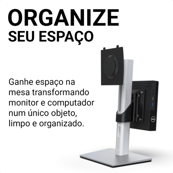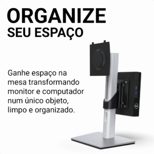 O Suporte para Pedestal Dell – CPUs Optiplex Micro Séries 3000, 5000 e 7000 foi desenvolvido para proporcionar uma instalação prática, segura e com visual limpo, integrando CPU e monitor em um único conjunto. Ideal para ambientes corporativos e setups minimalistas que valorizam organização e eficiência.