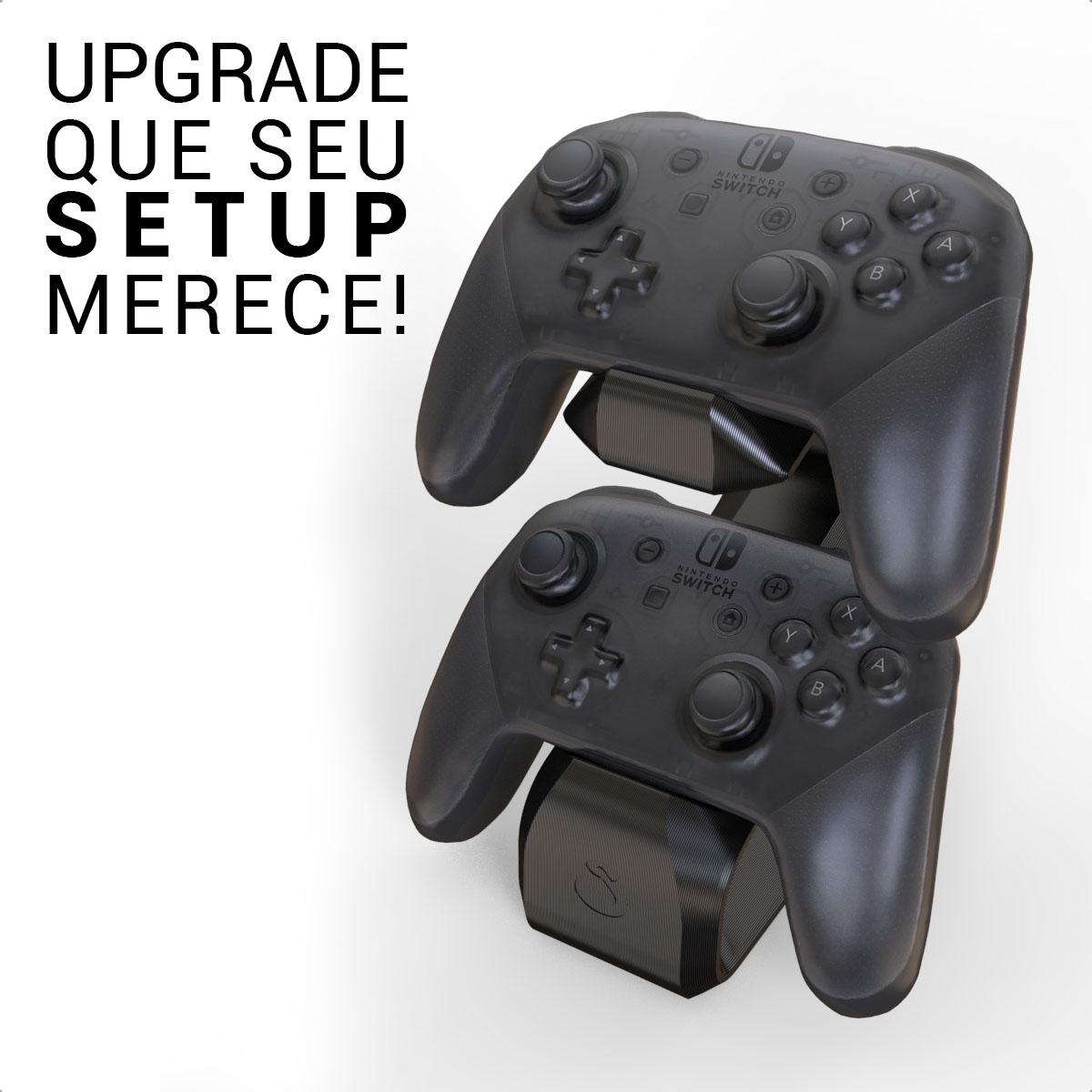 Organize e valorize seu setup gamer — o Suporte Sculpy para 2 Pro Controllers mantém seus controles Nintendo Switch seguros, acessíveis e com estilo profissional.