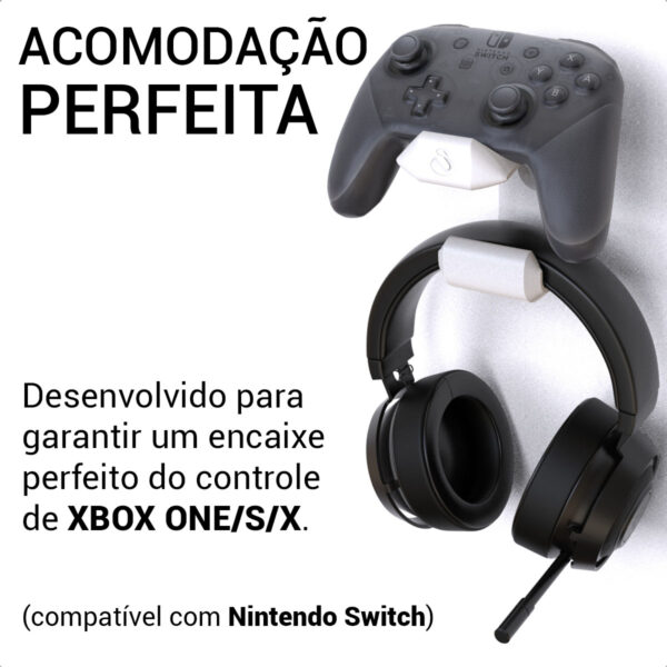 Compatível com controles Xbox One, Xbox One S e Xbox One X, além de headphones e headsets gamer de diferentes tamanhos. Perfeito para quem busca um suporte multifuncional que une praticidade e estética.