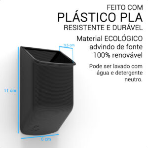 Fabricado em plástico premium resistente, o suporte garante alta durabilidade e acabamento refinado. É leve, robusto e fácil de higienizar — ideal para o uso diário sem desgaste.