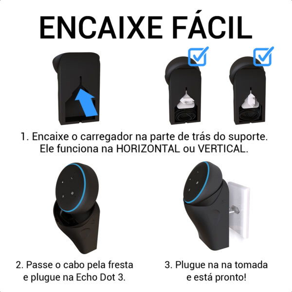 Em ambos os casos, o encaixe perfeito da Echo Dot 3 garante total segurança e conforto de uso.