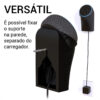 - Organizado: Mantém cabos e carregador ocultos no corpo do suporte.