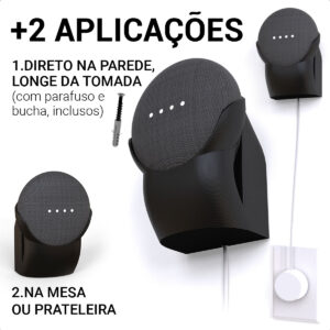 Com este suporte, o Google Nest Mini fica apoiado na própria tomada, dispensando mesas, prateleiras ou superfícies de apoio. Além de economizar espaço, evita quedas e melhora a distribuição do som e a visibilidade dos LEDs.