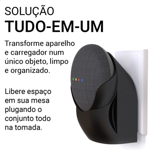 O Suporte de Tomada/Parede “Tudo-em-Um” para Google Nest Mini foi projetado para unir praticidade e design em um único produto. Compatível com as duas gerações do Google Nest Mini (1ª e 2ª), ele integra o aparelho, o carregador e o cabo em uma solução inteligente que se encaixa diretamente na tomada, mantendo seu ambiente limpo, organizado e elegante.