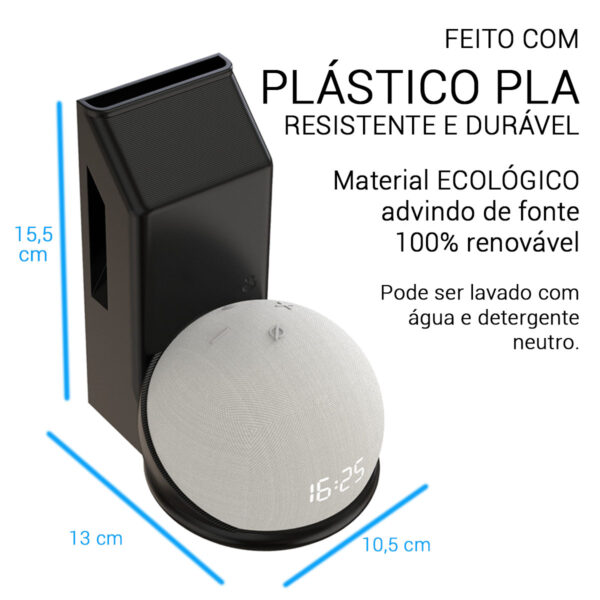 Com encaixe preciso, o suporte mantém sua Alexa firme, estável e sempre pronta para uso. Ideal para quem deseja organizar e valorizar o ambiente sem abrir mão do estilo.