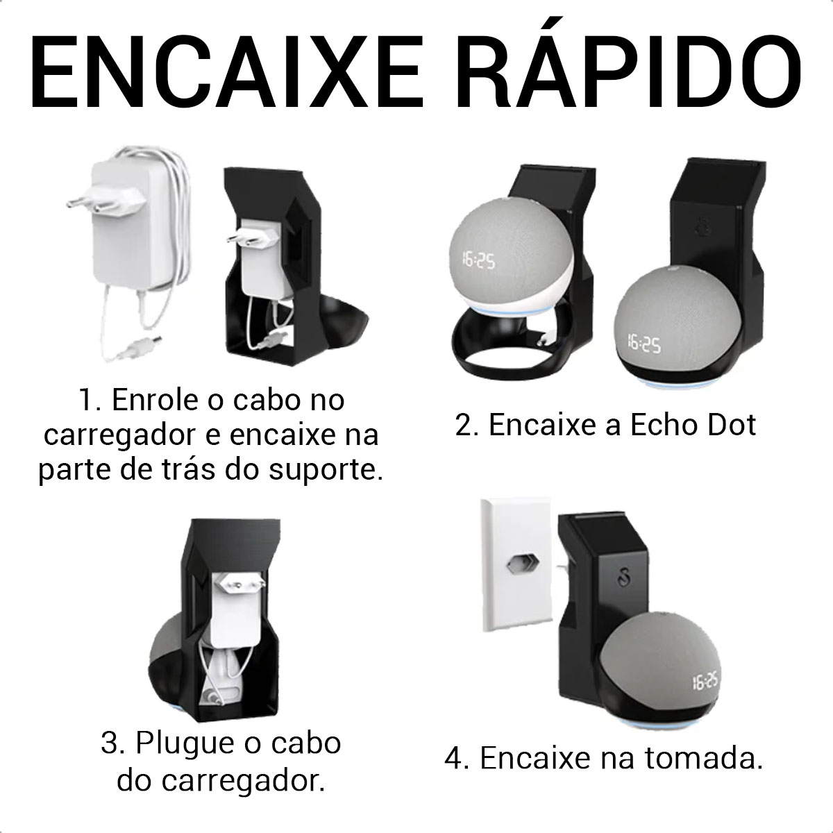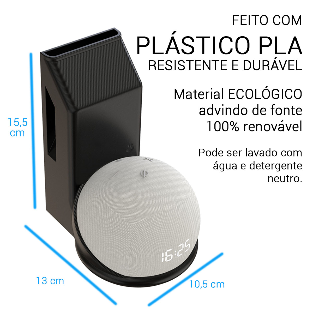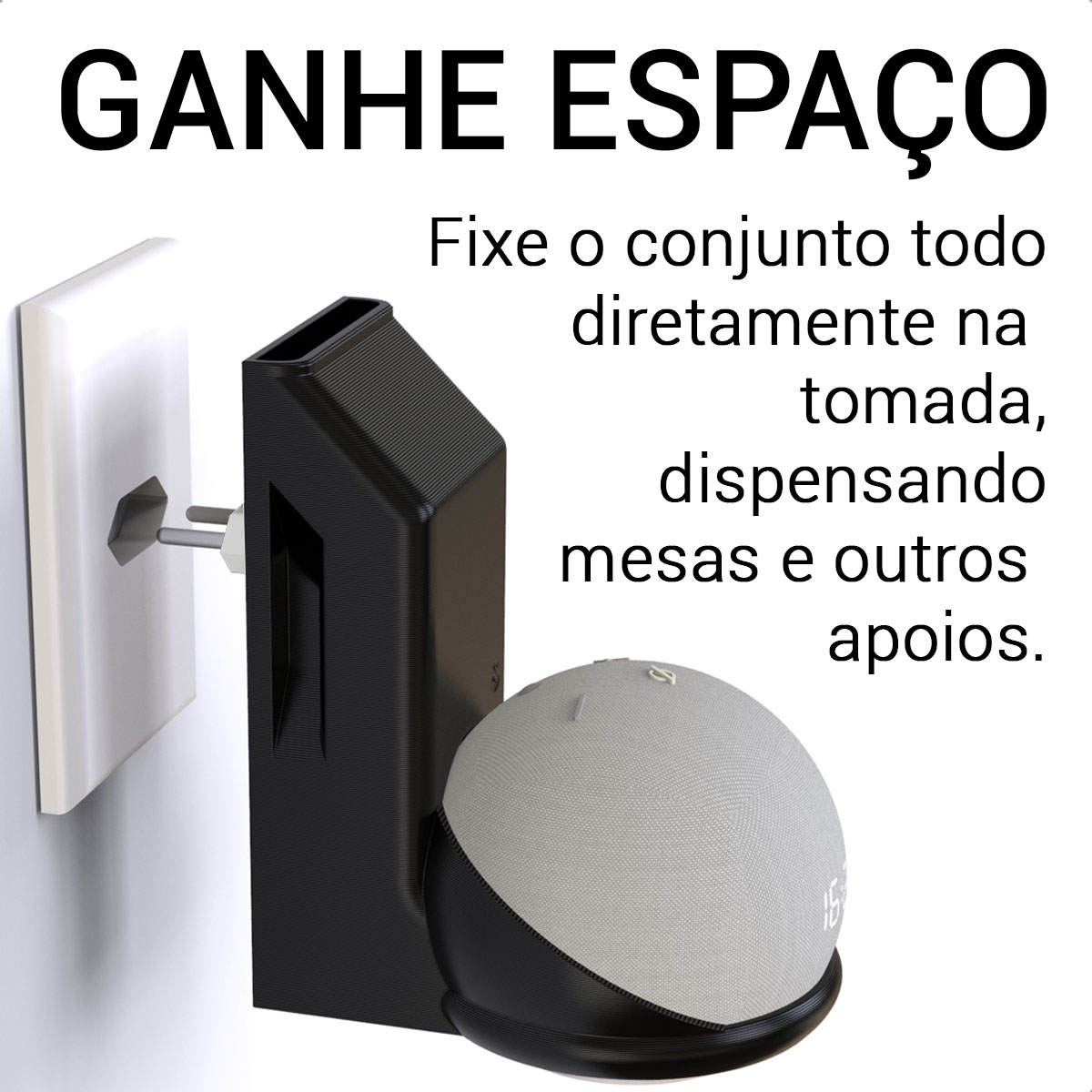Otimize seu espaço com o suporte de tomada Sculpy para Echo Dot 4 e 5 — design moderno, encaixe perfeito e praticidade total no seu ambiente.
