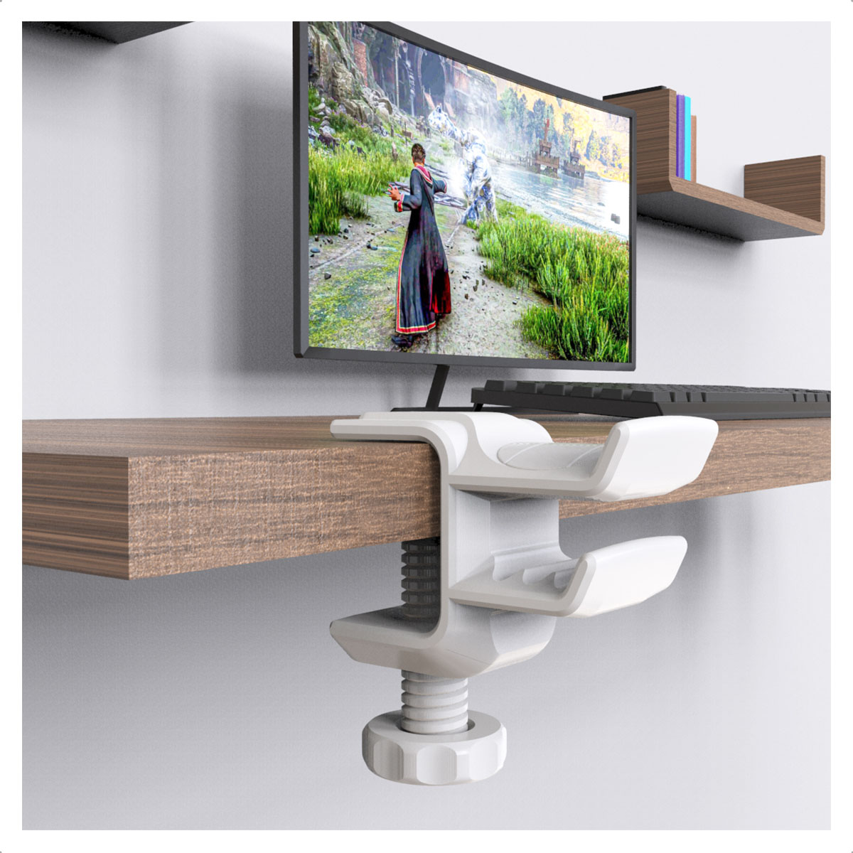 Mais espaço e organização no seu setup — o Suporte de Borda de Mesa Sculpy mantém seu headset sempre à mão com fixação ajustável e design elegante.