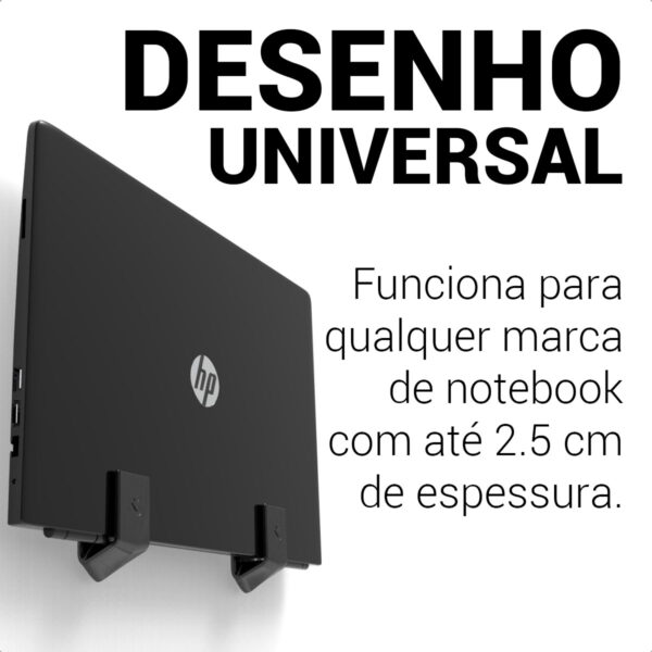 Compatível com todas as marcas e modelos de notebooks — como Dell, Lenovo, Asus, HP, Acer, Samsung, Apple e outros — o suporte foi projetado para oferecer encaixe estável e seguro sem bloquear as entradas de cabos, ventilação ou conexões laterais.