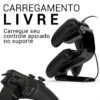 O suporte possui encaixe preciso para os controles, garantindo segurança e estabilidade. Seu desenho fluido e ergonômico acomoda perfeitamente os controles, sem pontas agudas ou salientes, evitando riscos e danos. Além disso, permite manter o cabo plugado para carregamento mesmo com o controle posicionado no suporte.