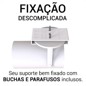 • Instalação Rápida e Simples: Fixação prática com 2 parafusos e 2 buchas inclusas. Também possui furação compatível com tripé (rosca 1/4″).