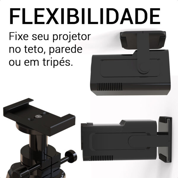 • Design Compacto e Funcional: Mantém o projetor fixo e bem posicionado sem comprometer a estética do ambiente.