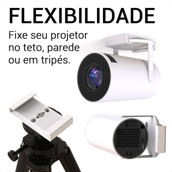 Fixe seu projetor Magcubic ou Salange HY 300 com praticidade e segurança — suporte versátil para teto, parede ou tripé, com encaixe firme e acabamento premium.