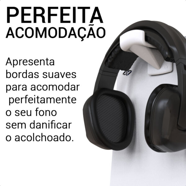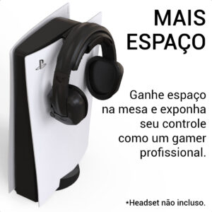 Projetado com bordas arredondadas e textura interna antiderrapante, o suporte evita riscos e mantém o headset estável. Seu encaixe preciso garante que o fone permaneça firme, mesmo durante o uso do console.