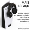 Além de funcional, o design moderno do suporte ajuda a liberar espaço na mesa e adiciona um toque sofisticado ao ambiente gamer.