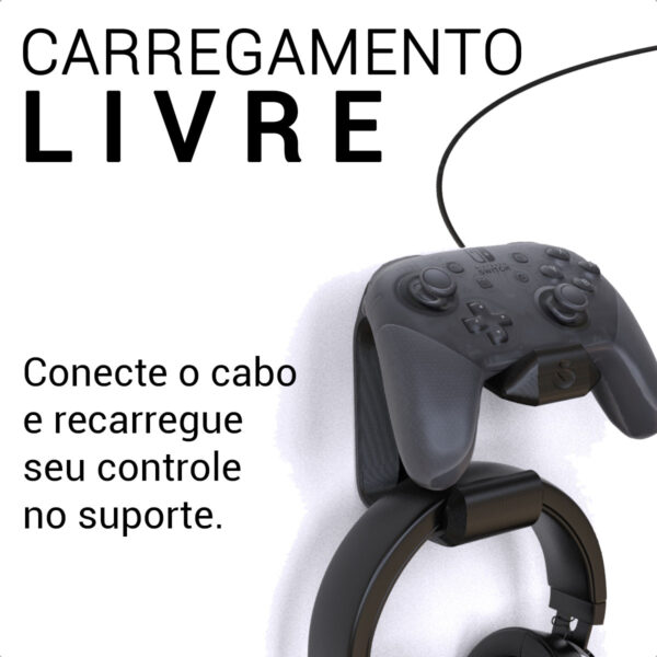 • Carregamento Descomplicado: O design permite deixar o controle conectado ao carregador enquanto está no suporte.