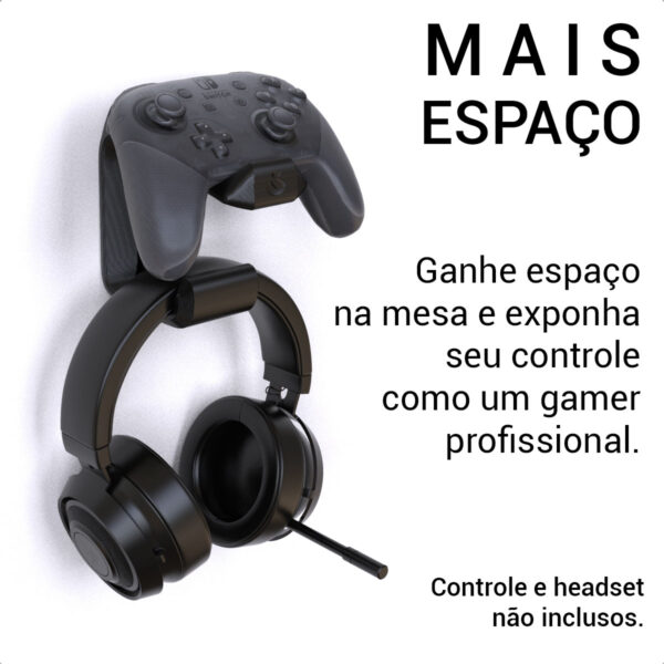 • Organização e Estilo Gamer: Armazene o Pro Controller e seu Headset de forma elegante, transformando sua parede em parte do setup.
