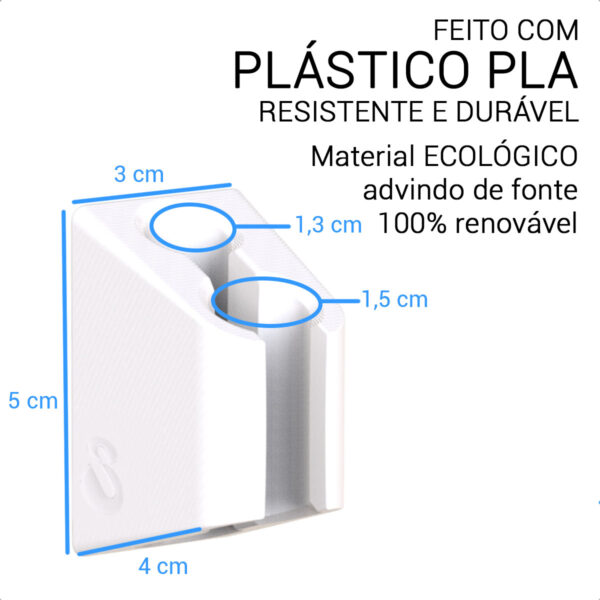 Fabricado em plástico premium de alta resistência, o suporte combina funcionalidade e estética. Seu design moderno e discreto se adapta a qualquer estilo de banheiro, oferecendo longa durabilidade e praticidade no dia a dia.