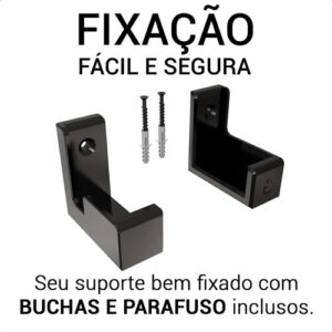 • Instalação Simples e Segura: Fixação através de 2 parafusos e buchas inclusos, permitindo montagem rápida e firme em paredes, painéis ou superfícies verticais.