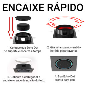 Suporte Quadrado De Embutir Teto Para Alexa Echo Dot 3