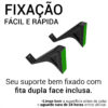 O suporte acompanha fita dupla-face de alta resistência já aplicada. Basta retirar a película protetora e fixar o suporte na parede, armário ou qualquer superfície lisa e limpa. Para garantir a melhor aderência: