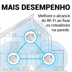 Ao elevar o roteador, o suporte melhora o alcance e estabilidade do sinal Wi-Fi, além de proteger o equipamento contra quedas e ocupação desnecessária de espaço em mesas ou prateleiras.