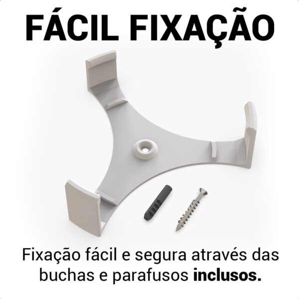 Acompanha parafusos e buchas para montagem rápida e firme. Em poucos minutos, o seu roteador estará fixado com estabilidade e perfeito posicionamento.