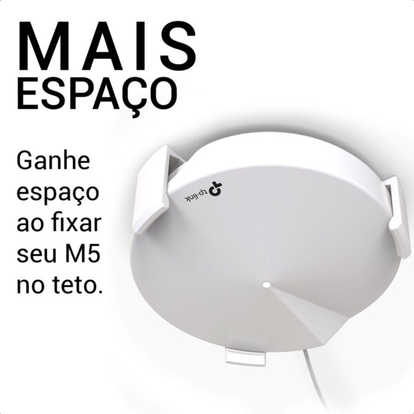 Compatível com todas as versões do TP-Link Deco M5 (V3 e V3.2), o suporte TPM5 é ideal para instalações limpas, seguras e otimizadas, seja no teto ou na parede.