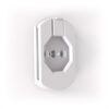 O encaixe é simples e firme: basta deslizar o projetor pela lingueta de apoio e travá-lo com a peça de segurança para garantir fixação completa. O design facilita a remoção rápida quando necessário, sem comprometer a estabilidade durante o uso.
