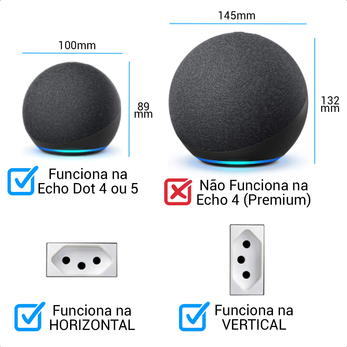 Suporte Tomada Vertical Ou Horizontal Alexa Echo Dot 4 Ou 5