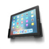 - Retire a proteção da fita dupla-face e posicione as cantoneiras “L” nos cantos do tablet (horizontal ou vertical). O próprio tablet serve de gabarito para alinhar as peças.
