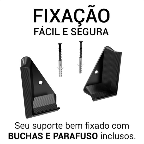 - Fixação: Fita dupla-face (inclusa) + 2 parafusos e 2 buchas