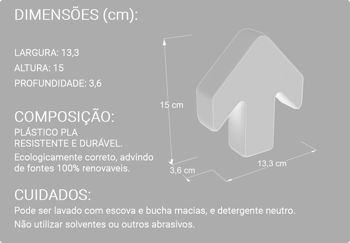 Fabricado com material plástico ecologicamente correto, com alta qualidade e acabamento.